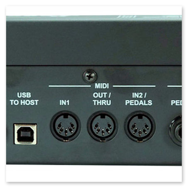- MIDI Midi In, Out, Thru, Out 1, Out 2, In, Thru, Pedalboard In