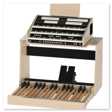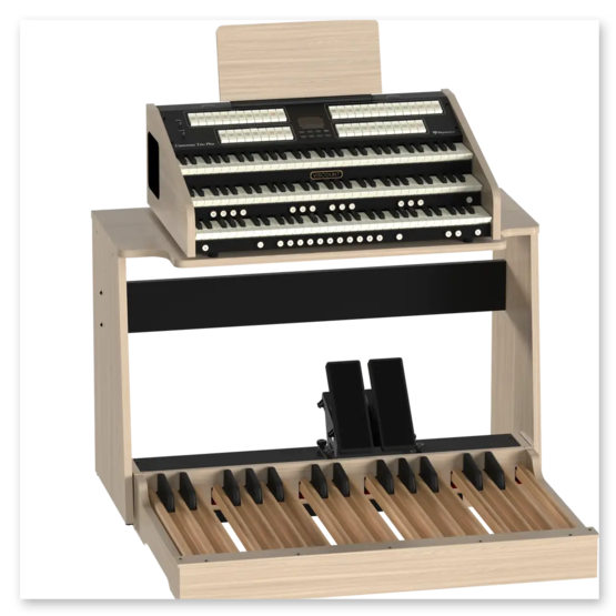 Cantorum Trio Plus är 3-manualig portabel modell med 46 stämmor och 4 orkesterstämmor.
