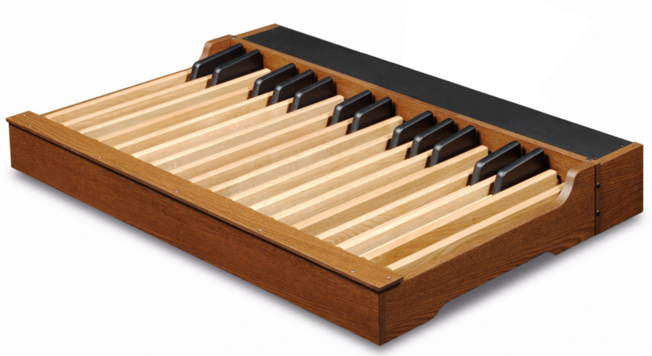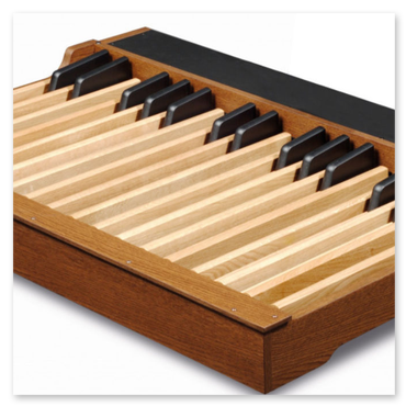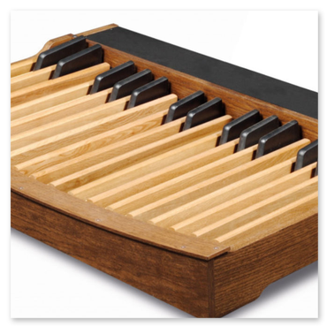 Förutom det nya notstället i trä ingår och man kan även få ett specialstativ i ekfinish samt volym- och sustainpedal.