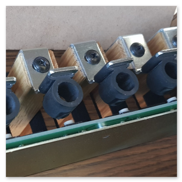 Skruva isär pedalens lock i framsidan - den in mot orgeln, och kolla gummiduttarna som du ser på bilden. Jag har gummiduttar på lager om det skulle vara felet.